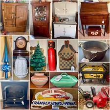 FAYETTEVILLE Estate closing Nov 14th with LR/DR/BR furniture; Sellers oak kitchen cabinet; oak icebox, corner cupboards, sideboard & jelly cupboard; slant front ladies desk; power recliner; folding tables; porch swing; Wattware pottery collection; Pyrex; RS Prussia chocolate & berry sets; Van Briggle; art glass; Native American pottery; sterling; cast iron kettle/skillets/clock; Wagner; oak wall telephone; Christmas; Byers Choice carolers; Fire Alarm box; oil lanterns; scales; Hess trucks; quilts; bakelite; TOOLS; snow blower; generator; pressure washers; more.
