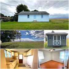 GREAT STARTER HOME in the COUNTRY for PUBLIC AUCTION at 3576 Sycamore Grove Rd, Chambersburg PA 17202 on Nov 7, 2025 @ 3pm. 2 BR, 1 bath, LR, DR, kitchen, full basement, shed, large 0.43+acre lot BORDERS FARMLAND with outstanding views.