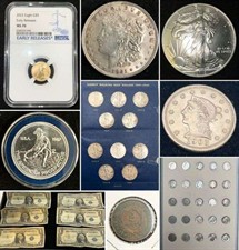 HUGE COIN AUCTION Closing March 6th with GOLD: $10 49er horseman; 1903 $2 ½ liberty head; $5 gold eagles; BULK LOTS of SILVER BULLION & COINS: Franklin & Kennedy halves; Morgan & Peace dollars; Roosevelt & Mercury dimes; graded coins; uncirculated mint sets; red-green-blue seal currency; album collections; Confederate notes; silver certificates; foreign currency; tokens; MORE!