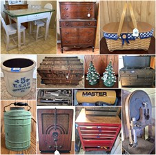 CASCADE Maryland Estate Closing April 2nd with LR/DR/BR furniture; vintage cream/green enamel top table; Chinese modern table; Chippendale drop leaf table; oak dresser; chest-on-chest; wicker arm chairs; corner cupboard; transport chair; Longabergers; Art Deco Philco radio; Christmas; PRIMITIVES;ES&B crock; cast iron kettle; vintage green milk can; AC units; grill; Schwinn bicycle; clarinet; TOOLS: machinist toolbox; compressor; mowers; band saw; Craftsman tool chest; more!