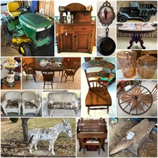 CHAMBERSBURG Estate closing Jan 9 with John Deere lawn tractor; HITCHCOCK table & chairs; jelly cupboard; Broyhill sofa/loveseat; marble top tables; wagon wheel table; wicker patio set; Victorian organ; porch swing; parlor lamps; dolls; pink depression; art glass; Longabergers; cast iron; TOOLS; garden statuary; ANVIL; more!