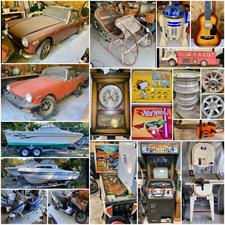 CLASSIC CARS, BOATS, ANTIQUES, TOOLS & MORE Closing Oct 3rd with 1974 & 1975 MG Midget convertible roadsters; Yamati & Kymco scooters; 1988 Renken Seamaster & 1997 Pro-Line BOATS w/ trailers; antique sleigh; Bally Dogies pinball machine; Atari Pole Position arcade game; Rowe jukebox; hunting equip; VINTAGE clocks/radios/cameras/toys/lunchboxes; slot cars; aluminum Christmas tree; cast iron; guitar; ANTIQUES; stereo equip; mountain bikes; LOTS of TOOLS; auto parts/wheels/rims; tractor tires; engine hoists; generators; compressors; chainsaws; toolchests; lawn aerator; band saw; more!