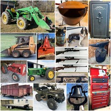 PICKER’S DREAM closing Jan 6th with FARM EQUIPMENT/GUNS/ATVs/ANTIQUES/TOOLS! John Deere TRACTORS: 5510 4WD w/ front loader, 4020 diesel w/ front loader, 3010, 1025R-utility, 345-mower; Ford 641 tractor; CASE skid loader; JD 3pt brush hog & bottom plow; NH FARM WAGONS & sickle bar mower; fluffer tedder; MF box blade; Danuser F8 PTO digger; flatbed & dump TRAILERS; oil lubesters; log splitter; PTO skidding winch; PTO generator w/ arc welder; Suzuki Quad Runner ATV; row boat; FIREARMS: Savage, Remington, Ruger, Stevens, Winchester, Taurus, etc; AMMO; LR/DR/BR FURNITURE; oak bow front china cabinet; LaZBoy sleeper sofa; tall gun safe; garden benches; chest freezer; refrigerator; ANTIQUES & PRIMITIVES: butchering kettle; enamel cookstove; Mort Kunstler prints; clocks; art glass; crocks; jugs; advertising; spongeware; milk bottles; LOTS of cast iron-doorstops, farm bell, banks; lard press; copper kettle; Marx trains; manual typewriter; Pyrex; Electrolux vacuums; Woolrich blanket; hunting supplies; vintage Schwinn bicycle; Christmas; TOOLS: JD pressure washer; Stihl chainsaws; anvil; tractor chains; lumber; & more!