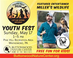 Presented by Buttonwood Nature Center. FREE. Geared for kids of all ages, the event features a variety of activities and entertainment throughout the day. Featured entertainment: Birds of Prey presented by Miller’s Wildlife. Learn about birds of prey, also known as raptors. Miller’s Wildlife will take you under their wing and teach you about the distinct characteristics of a variety of raptors. From “feathered missiles” to “wolves of the sky,” this program will take your understanding of raptors to new heights! Activity stations with area artists and organizations provide more fun. For more information, visit: buttonwoodnaturecenter.org, call 717-762-0373 or email at: info@buttonwoodnaturecenter.org.